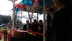 Директор школы Гуль С.А. выступила с благодарственной речью. Перерезали ленточку Новиков А.Н., Марченко О.А., МачусскийА.Д. Право первыми войти в столовую было предоставлено учащимся начальной школы, для них был приготовлен праздничный завтрак.